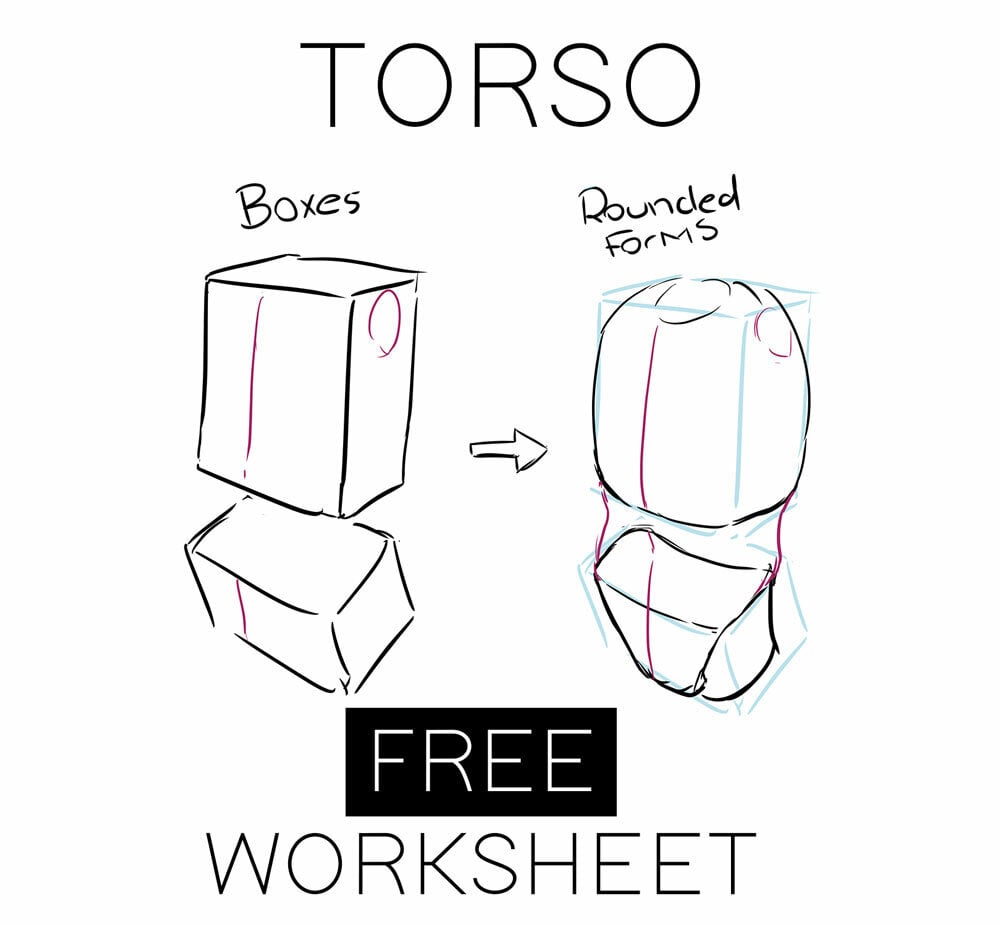 Learn how to draw the torso using this free worksheet and video tutorial :D